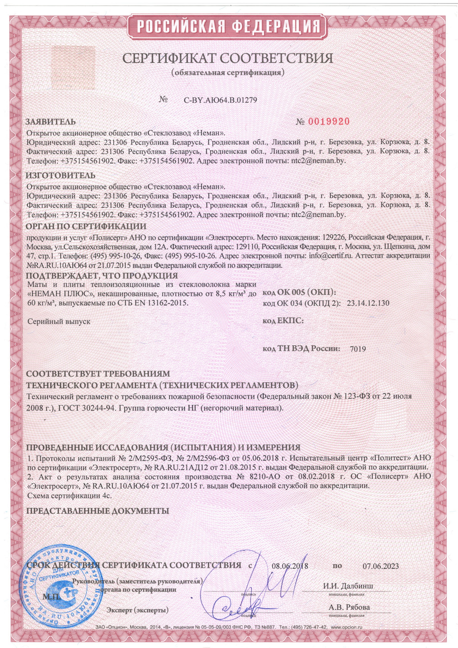13 | Сертификат (RU) | Неман утеплитель | Сертификат | JPG | Открыть Скачать |