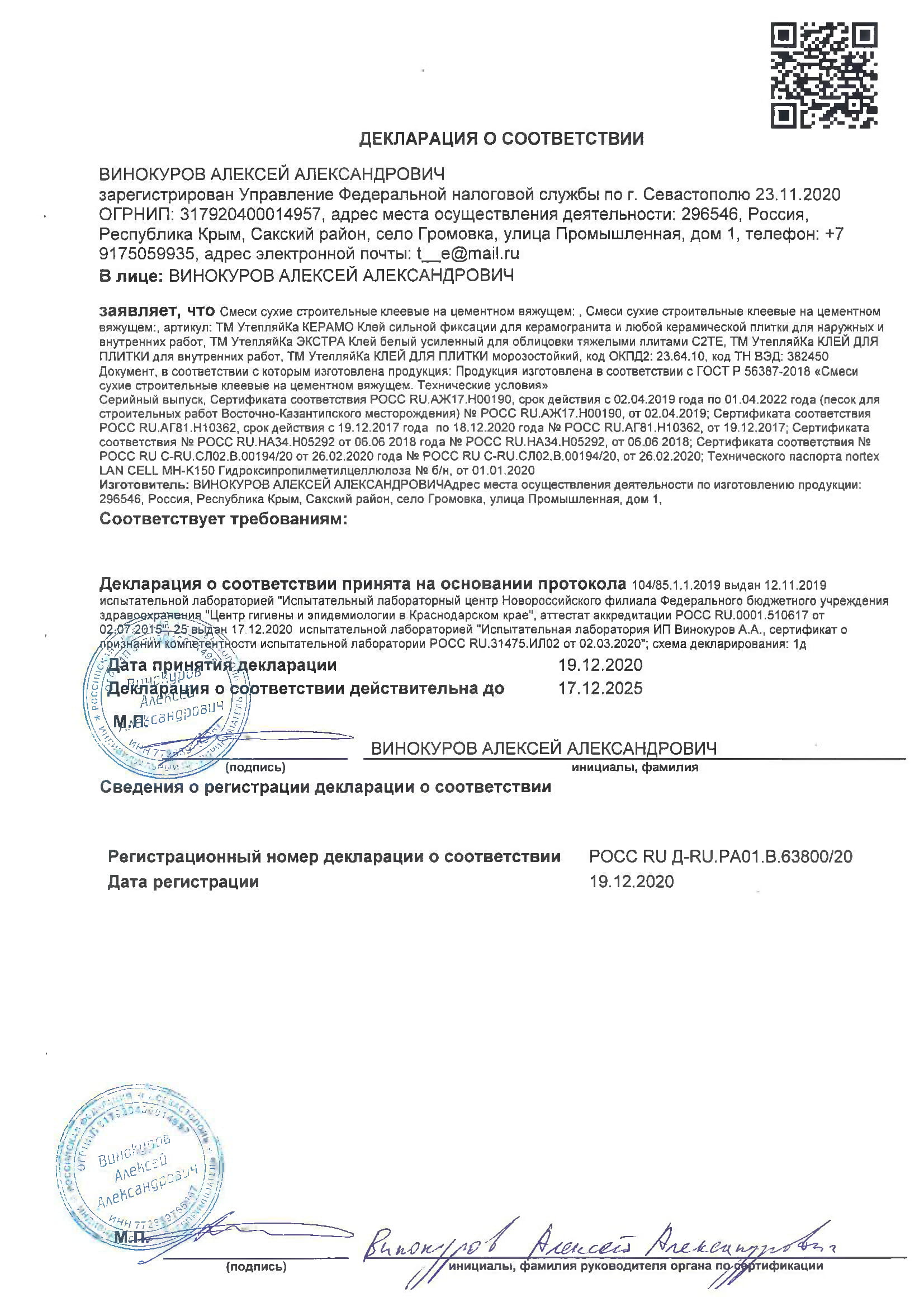 19 | Декларация соответствия | Утепляйка — Клей для плитки | Декларация | JPG | Открыть Скачать |