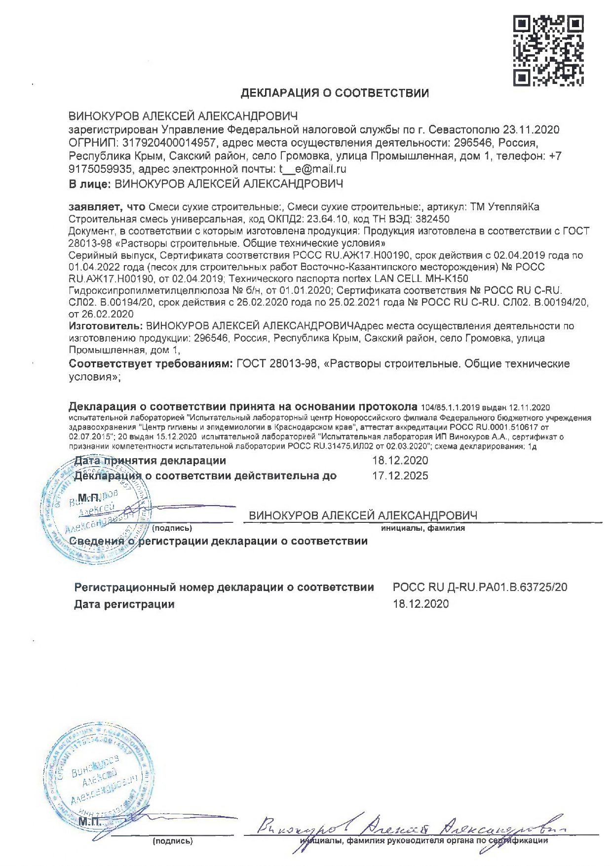 20 | Декларация соответствия | Утепляйка — Смесь М150 | Декларация | JPG | Открыть Скачать |