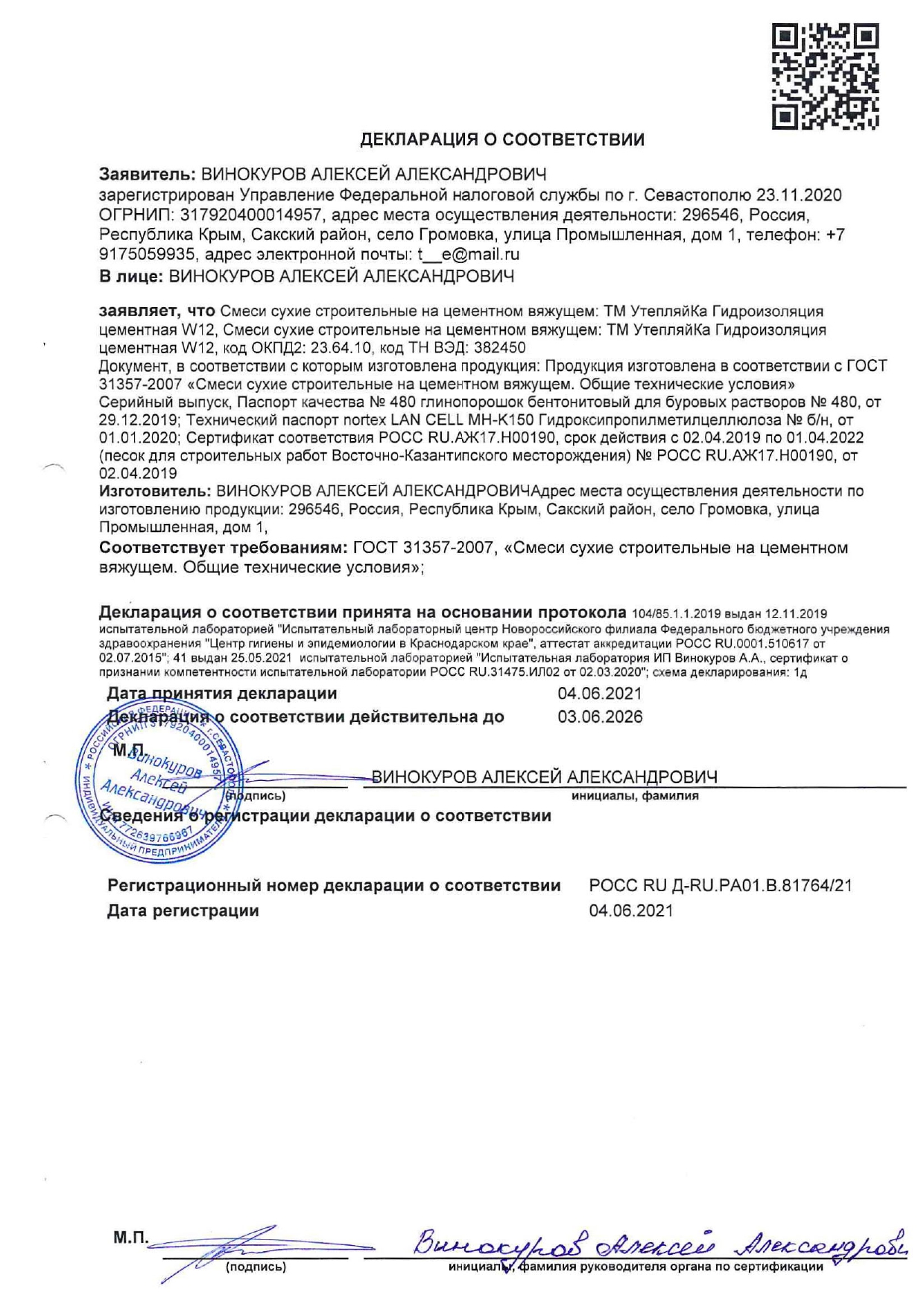 21 | Декларация соответствия | Утепляйка — Смесь гидроизол. | Декларация | JPG | Открыть Скачать |