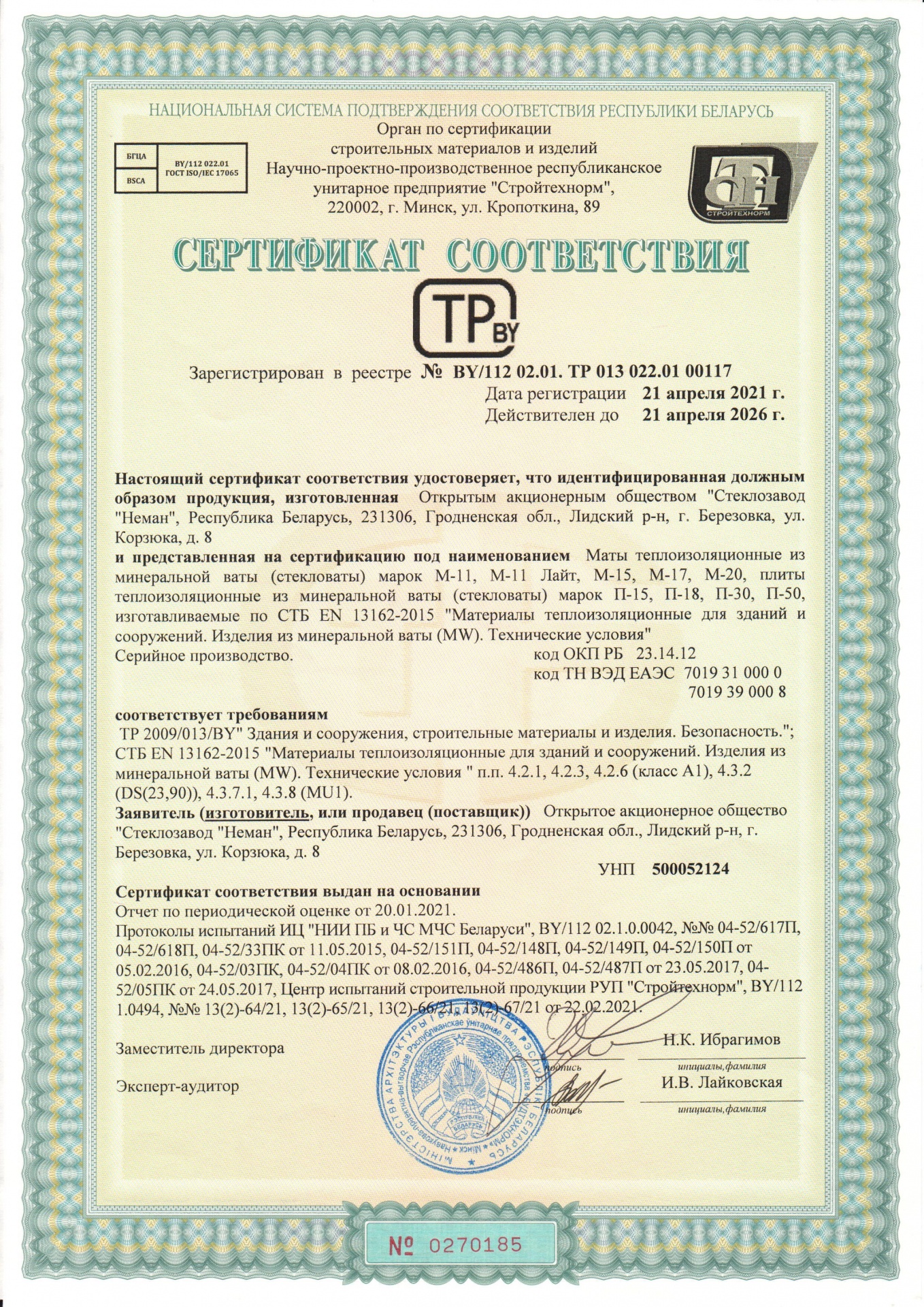 | 12 | Сертификат (BY) | Неман утеплитель | Сертификат | JPG | Открыть Скачать |