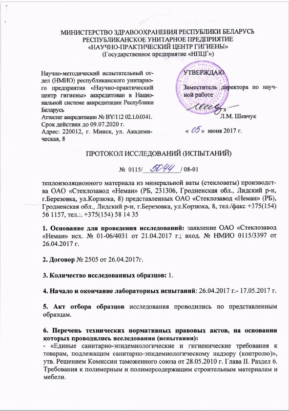 | 15 | Протокол испытаний №2 | Неман утеплитель | Лабораторный | JPG | Открыть Скачать |