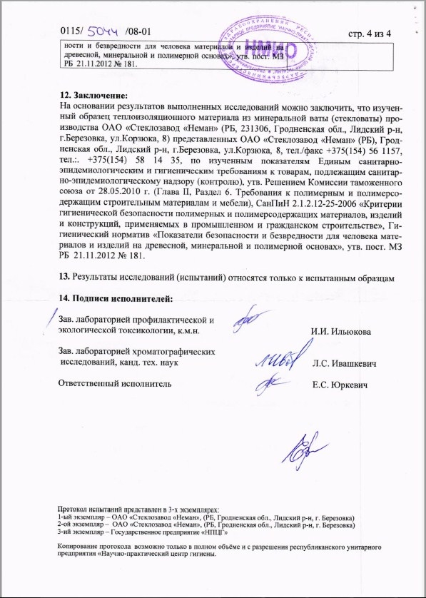 | 14 | Протокол испытаний №1 | Неман утеплитель | Лабораторный | JPG | Открыть Скачать |